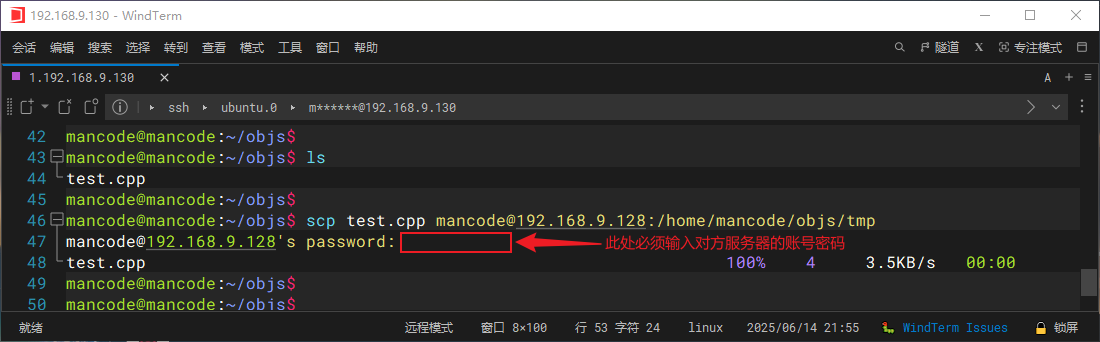 比如我们欲将test.cpp文件从192.168.9.130拷贝到192.168.128服务器,一般执行流程如下图所示: