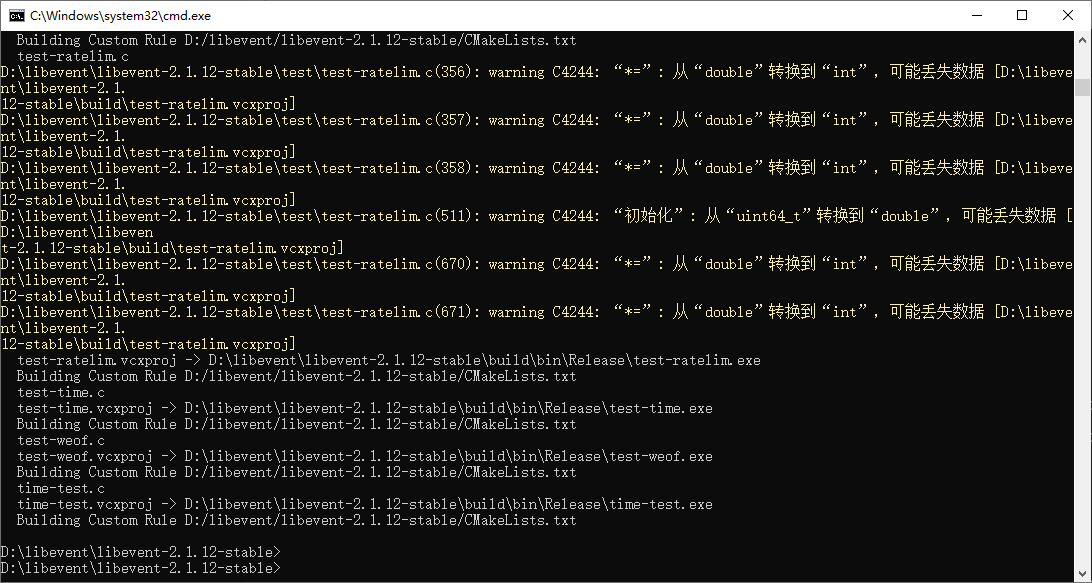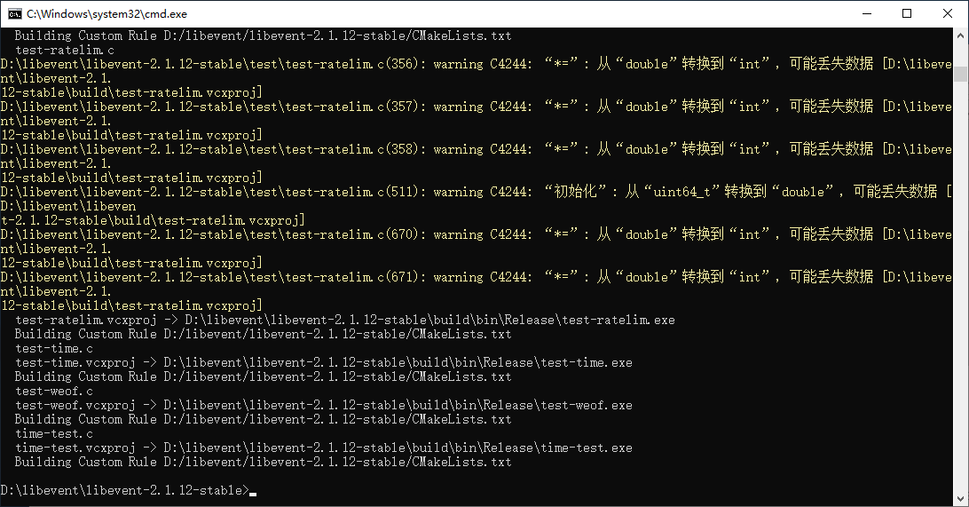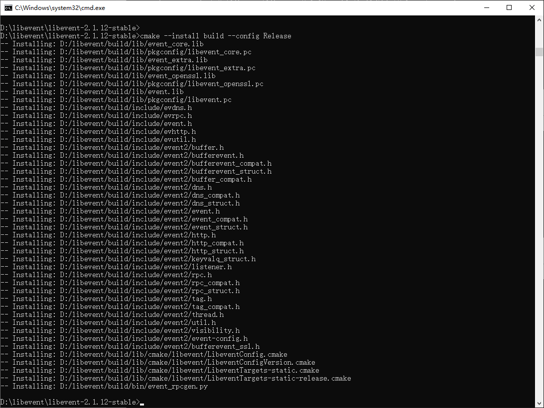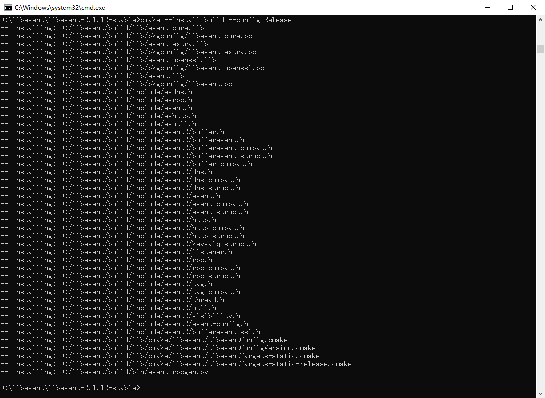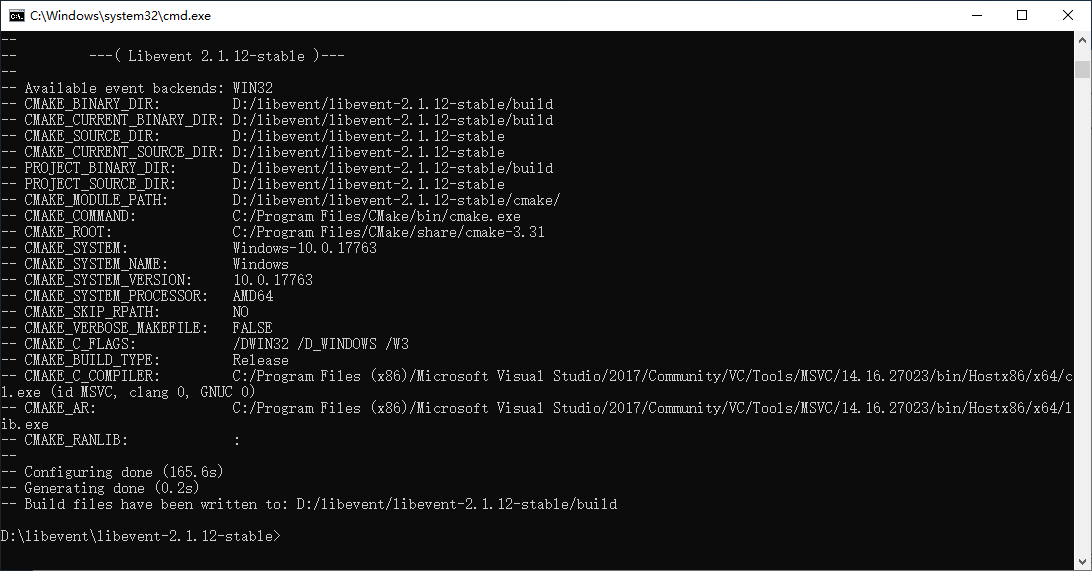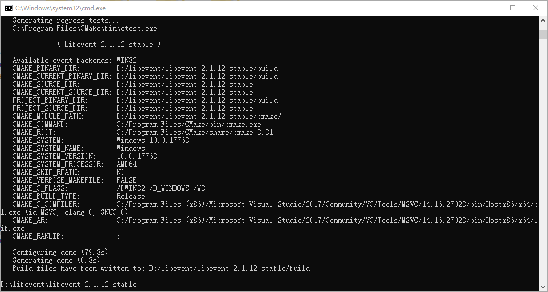 在Windows上我们使用cmake+visual studio 2017编译libevent库,如下命令: