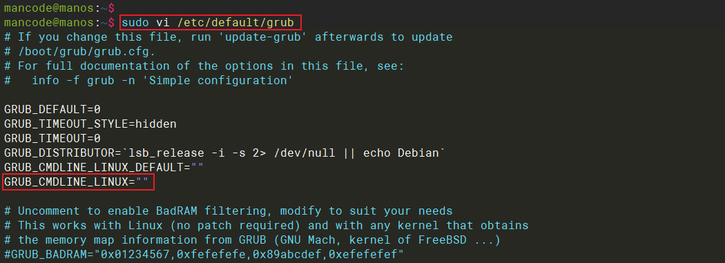 该方法主要是修改 /etc/default/grub 中的相关启动参数。这种方法是最简单的方法,但需要你重启系统。