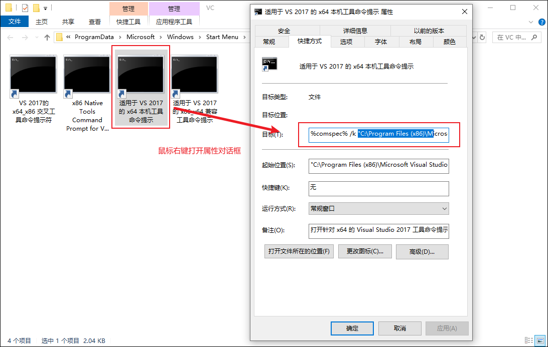 鼠标右键菜单中添加“适用于VS2017的x64本机工具命令提示”