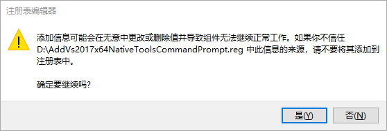 然后双击运行该reg文件,一般操作系统弹出如下窗口,提示我们将文件中的信息添加到注册表中,此处我们点击“是”即可: