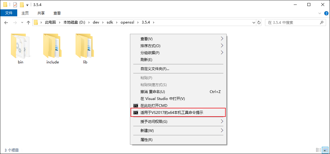 本文记录一种在右键菜单中,增加打开“适用于VS2017的x64本机工具命令提示”的快速入口。