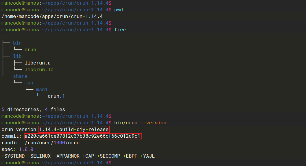 本文记录手工编译crun以及使用crun创建容器的方法,供后续学习源代码做准备。