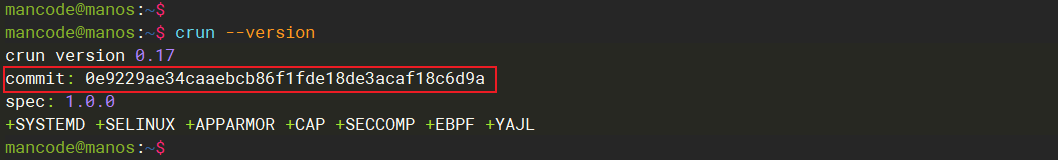 我们执行 crun --version 命令时会有 commit 的一行输出,它代表当前代码在git仓库中的版本号,而这个版本号就是出自于git-version.h文件。