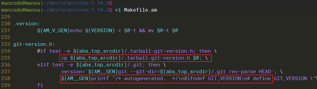 而我们下载的release包,比如crun-1.14.4.tar.gz,解压后,它既没有 .tarball-git-version.h 文件,又不是一个有效的git仓库,所以上述两种方法都无法正常生成 git-version.h。