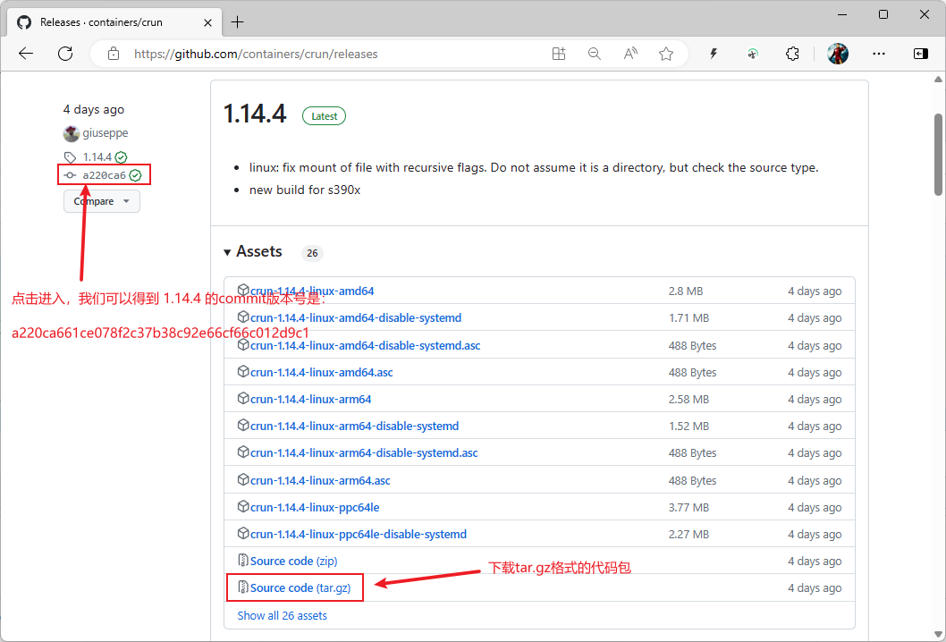 网站地址: https://github.com/containers/crun/releases