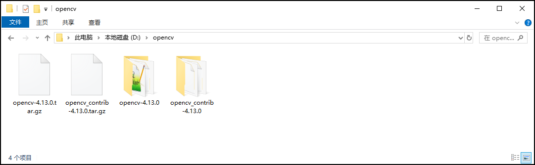 第一步:将下载的opencv-4.13.0.tar.gz和opencv_contrib-4.13.0.tar.gz解压,如下图所示: