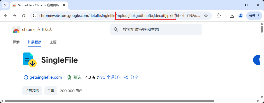 我们以下载SingleFile扩展程序为例。