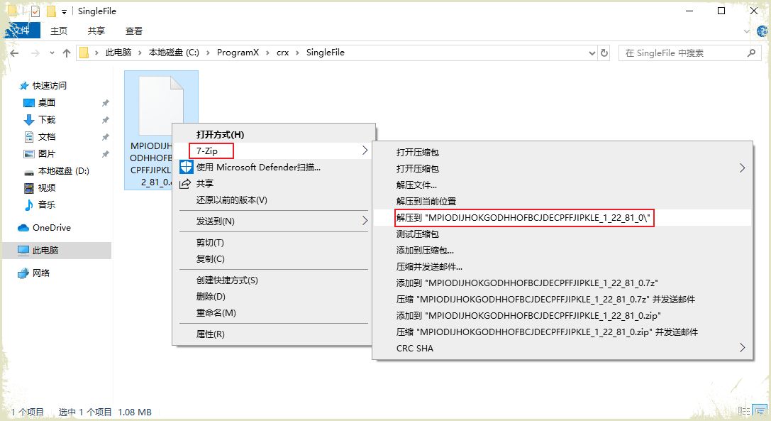 第一步,我们将下载的扩展程序拷贝某个目录,然后将其解压。如下图所示: