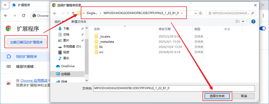第三步,点击“加载已解压的扩展程序”,然后选择上一步crx解压后的目录。如下图所示: