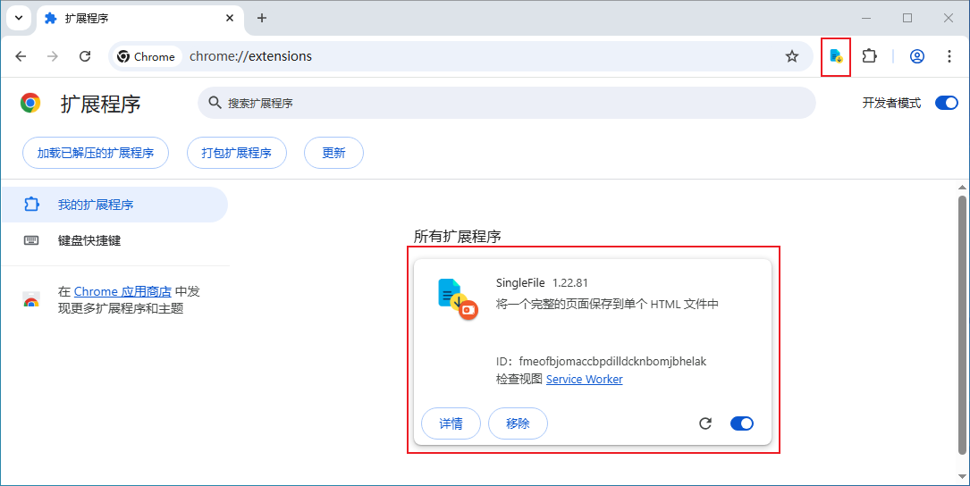 第一步,获取扩展程序SingleFile的id,如下方法: