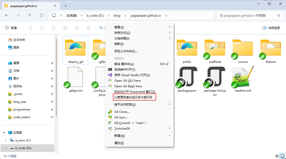 将如上内容保存为文件"admin.reg",然后双击运行该文件。我们再在特定的目录,按住键盘上的”Shift“键,同时点击右键,此时的右键菜单将有一个”以管理员身份运行命令提示符“菜单项,点击该菜单项打开管理员身份的cmd窗口。