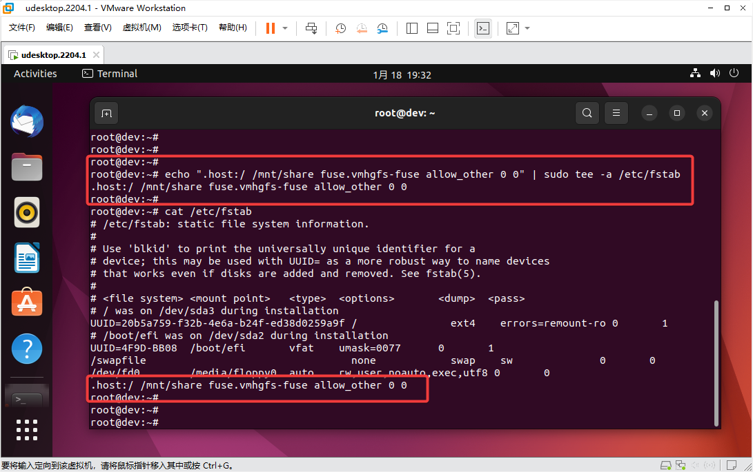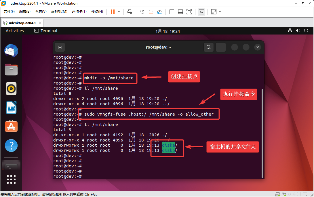 然后,在Ubuntu系统内挂接共享文件夹,使用如下命令: