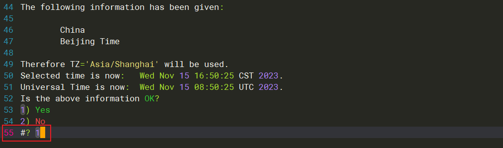 安装操作系统时,我们可以选择我们中国对应时区“Asia/Shanghai”,但如果选择了默认时区“Etc/UTC”,后续显示的时间肯定与我们本土时间对应不上,所以需要我们再次设置时区。