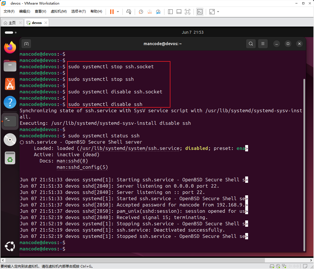 上节我们使用 systemctl start ssh 命令启动openssh-server,如果需要停止openssh-server,我们可以使用如下命令: