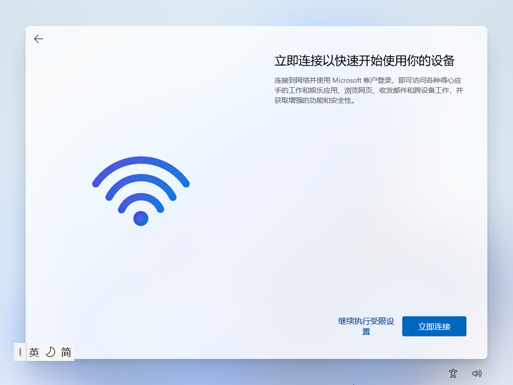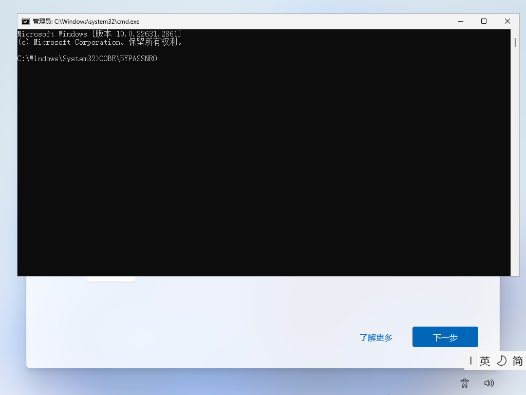 windows#win11激活方法 发表于: 2007-12-01 更新于: 2022-01-29 分类于: 11#软件使用 字数: 211 阅读:≈ 1分钟 浏览: Win11激活强制要求联网以及登录,在不设置的情况下,还不能跳过,如下方法教我们初装系统时跳过该两项设置。此处是要求我们必须登录。解决方法:按下Shift+F10或者是Fn+Shift+F10快捷键调出命令提示符窗口,然后输入以下指令文本:OOBE\BYPASSNRO。(不包括句号)随后按下回车,电脑进入重启。输入命令之后,系统重新启动。选择“我没有Internet连接”。选择“继续执行受限设置”,然后进入Win11。