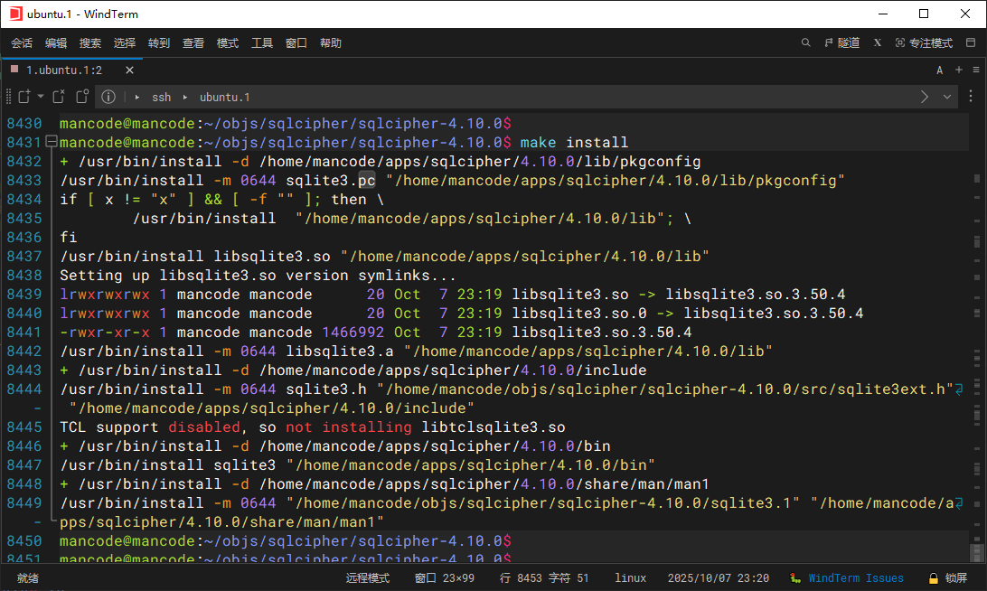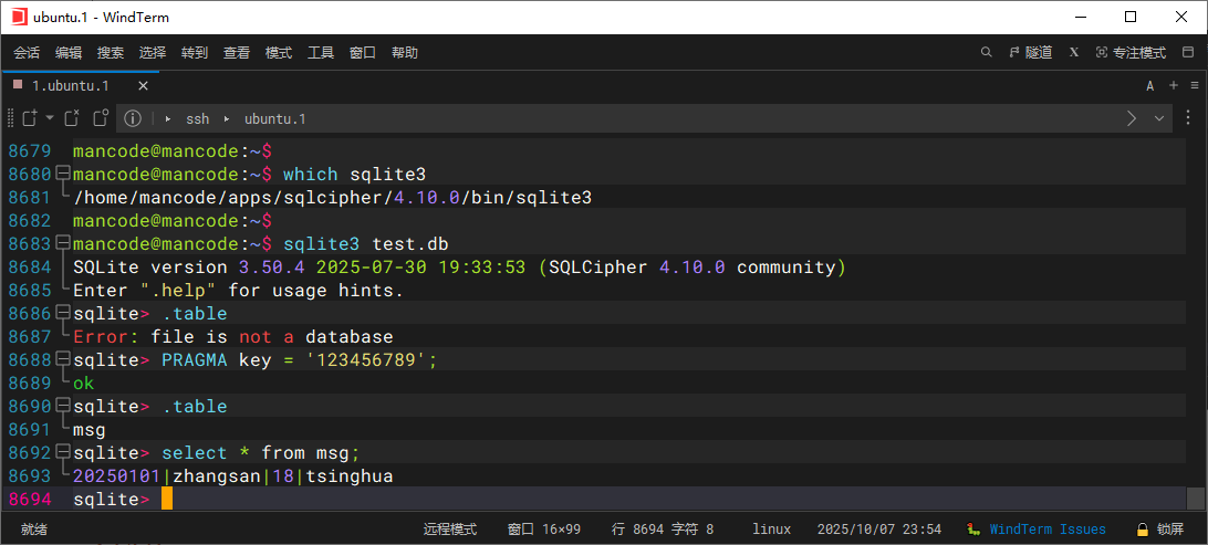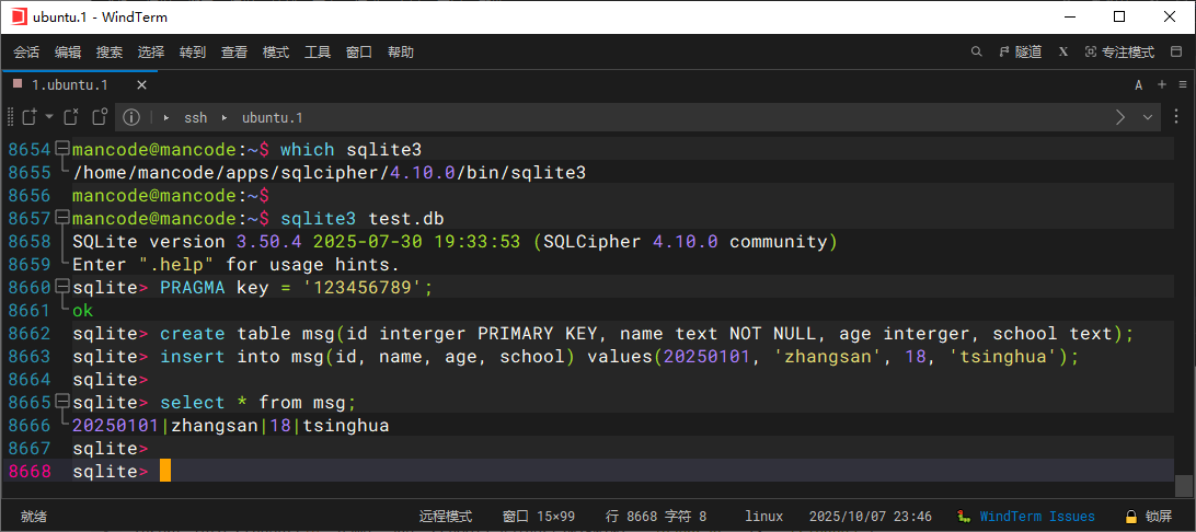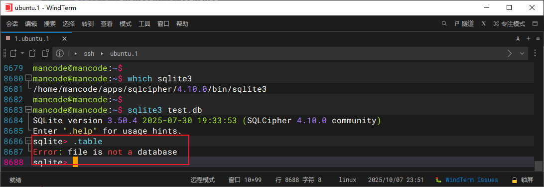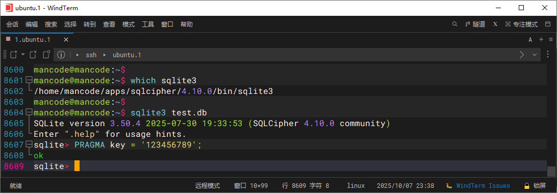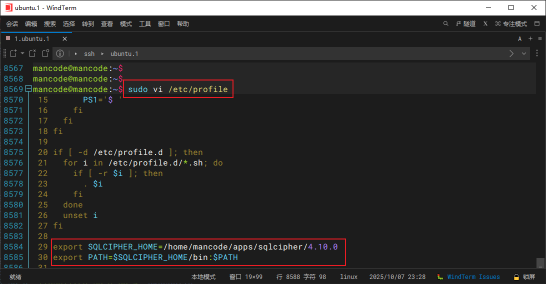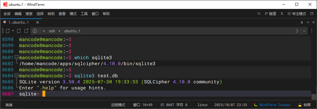 将 /home/mancode/apps/sqlcipher/4.10.0/bin 加入到系统PATH中,方便调用sqlite3命令。