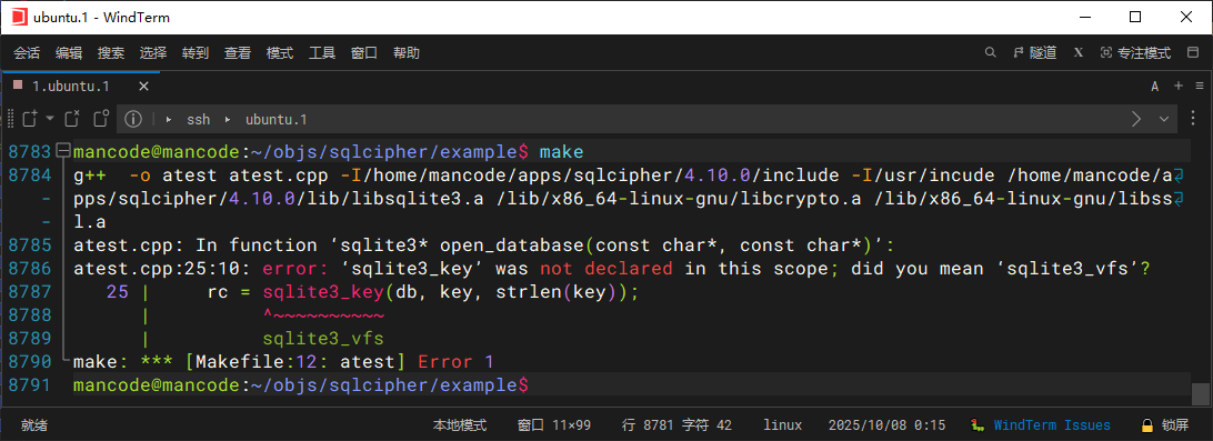 注意:编译参数务必加上 -DSQLITE_HAS_CODEC,否则会报如下错误: