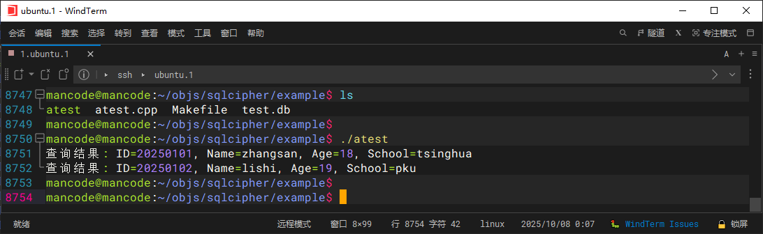 使用该SDK的测试代码和工程文件,可参考:https://github.com/sanxiansite/sqlcipher-example/tree/main/example/linux