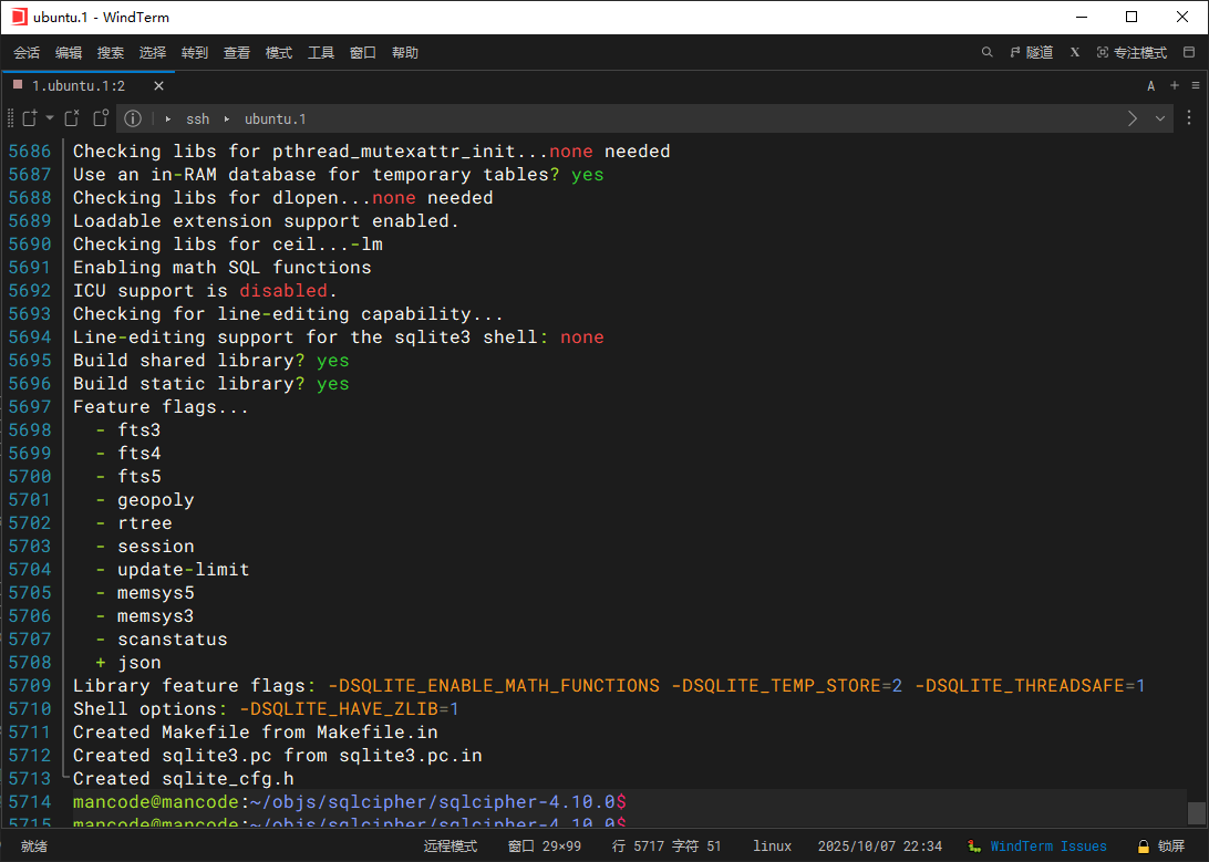 第二步,进入SQLCipher解压后的代码目录,使用如下命令配置编译选项: