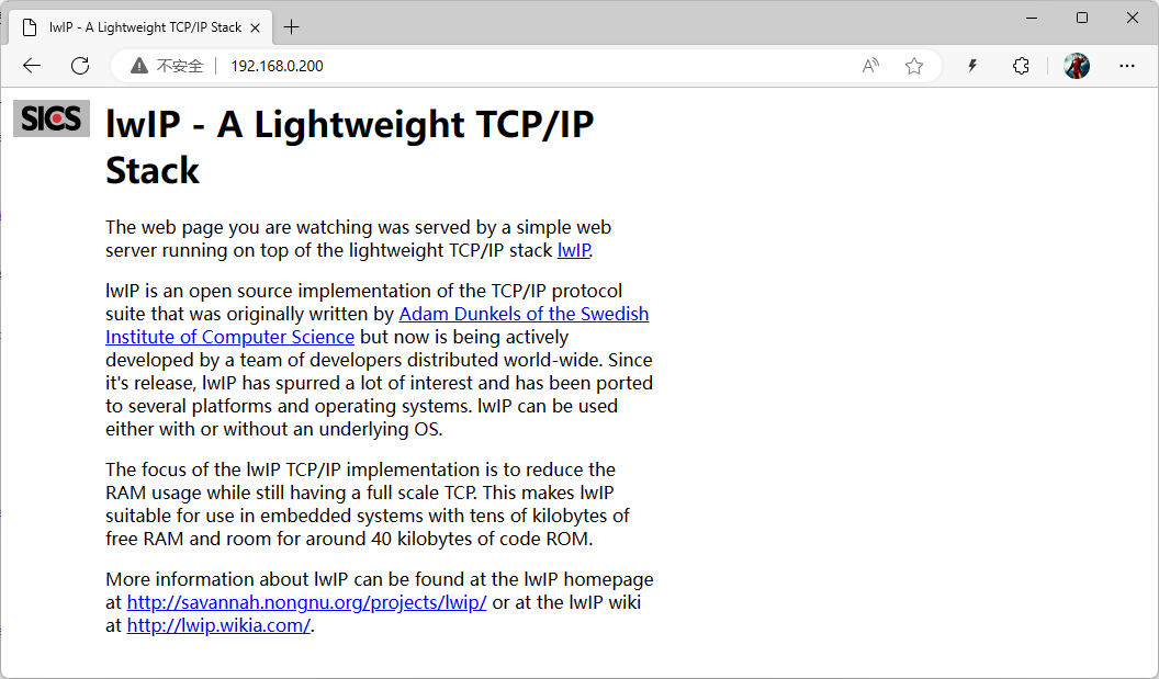 - LwIP协议栈的数据链路层、网络层、传输层依次处理之后,到达应用层的httpd功能服务模块,httpd分析http请求处理之后,根据http请求,原路返回一段 html 文件。