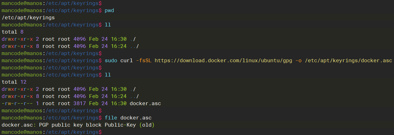 sudo curl -fsSL https://download.docker.com/linux/ubuntu/gpg -o /etc/apt/keyrings/docker.asc
