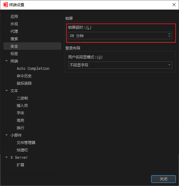 WindTerm默认30分钟之后,锁定屏幕。如下图所示: