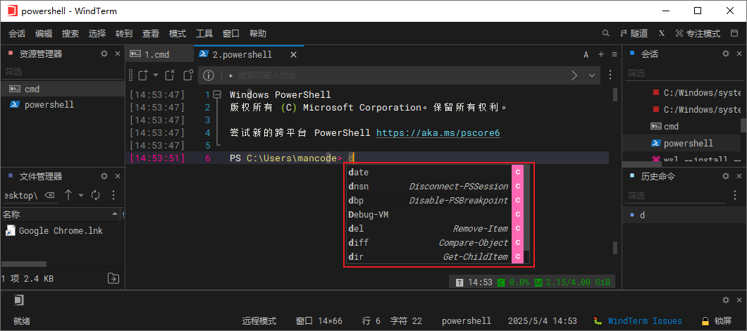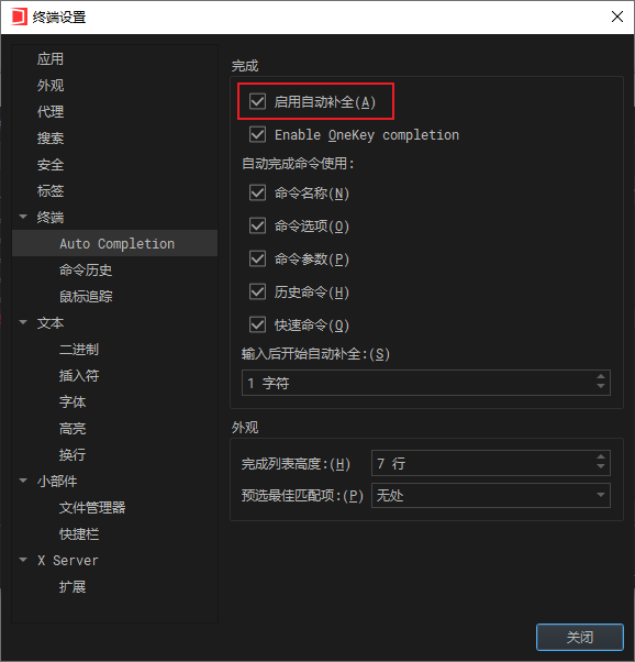 WindTerm默认输入1个字符之后,开启命令自动补全。如下图所示:
