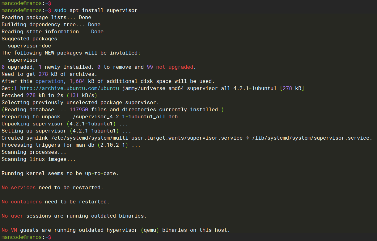 在Ubuntu系统上,我们使用apt安装supervisor,命令如下: