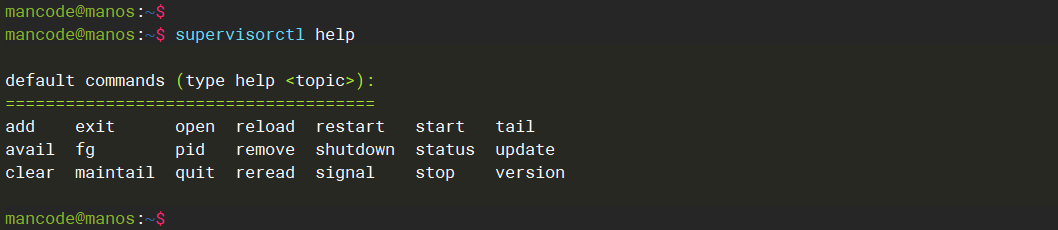 使用 supervisorctl help 命令获取 supervisorctl 支持的命令列表,如下图所示: