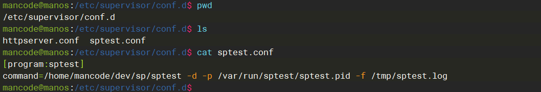 被管理程序的配置文件,如下所示(其中启动服务所用-d选项表示进入后台守护进程模式):