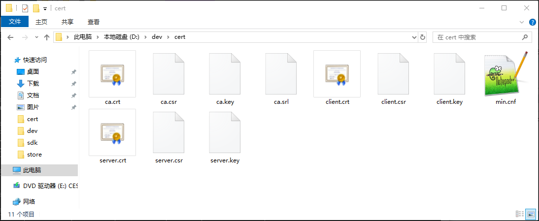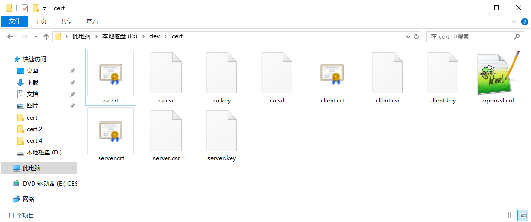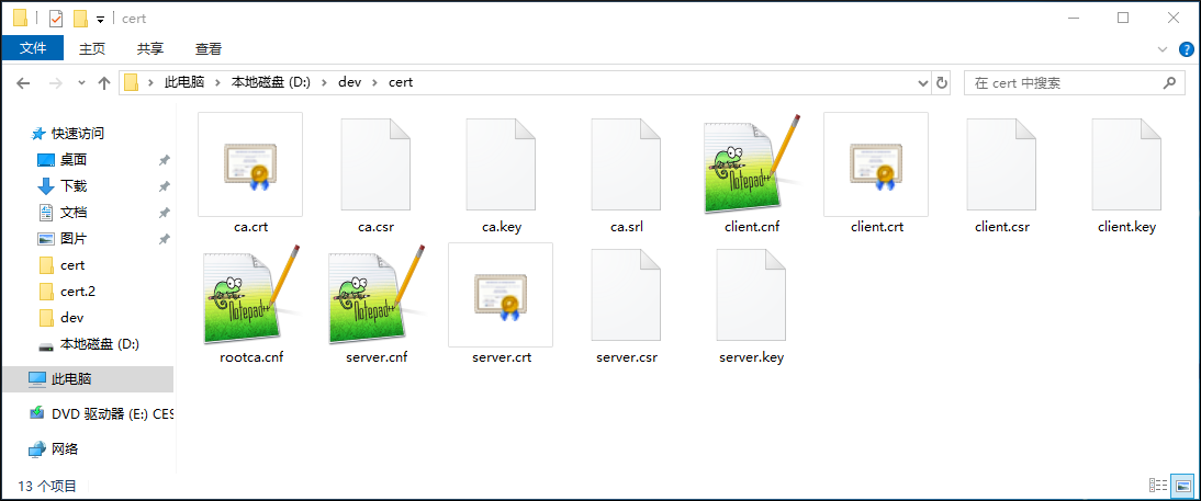 至此,使用当前方法已生成了客户端和服务端通信用的数字证书,各证书的具体的使用方法,我们将在后文介绍。