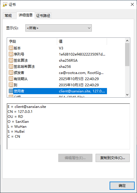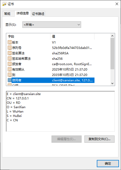双击各数字证书文件,我们查看下证书的使用者信息: