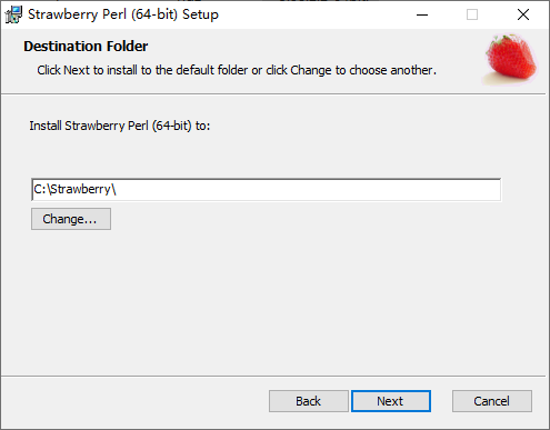下载完毕之后,直接双击运行,使用默认选项进行安装即可,如下界面展示了Strawberry Perl的默认安装路径: