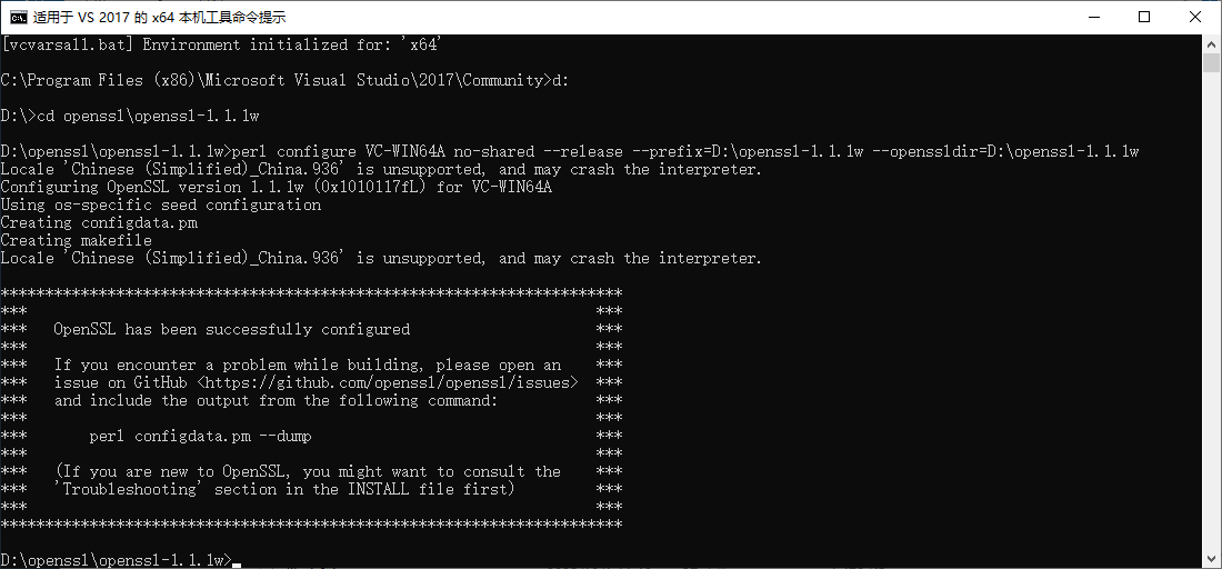 至此,OpenSSL的Release版本的静态库已编译完成。如果我们需要Debug版本或者动态库,可以参考如下命令: